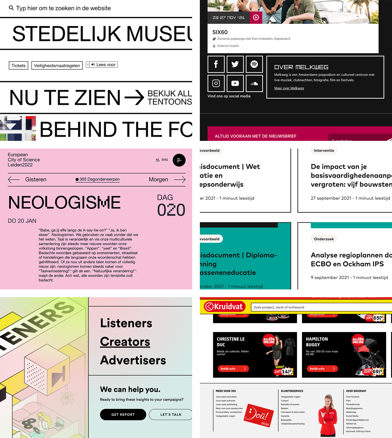 Bold border style bij het Stedelijk Museum Amsterdam, poppodium De Melkweg, Leiden European City of Science 2022, Expertisepunt Basisvaardigheden, Spotify en Kruidvat.