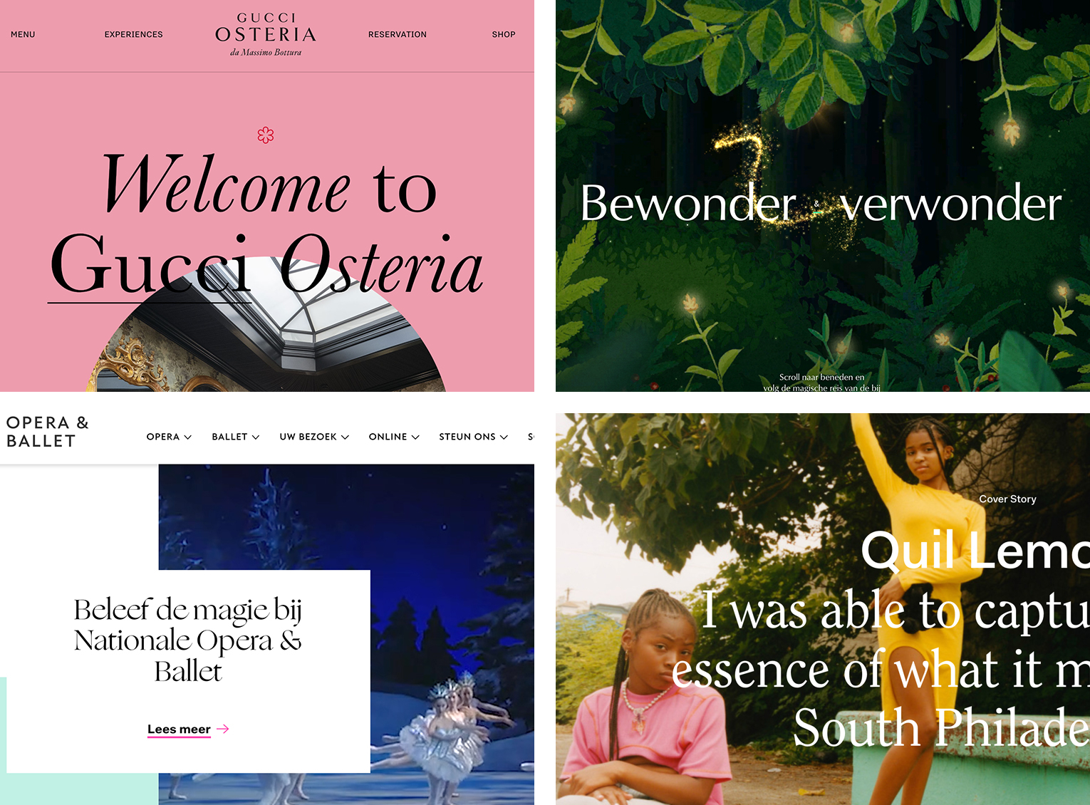 Jaren ’50-fonts bij Gucci, Bijenkorf, Nationale Opera & Ballet en WeTransfer.