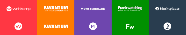 Responsive logo’s van Wehkamp, Kwantum, Monsterboard, Frankwatching en Marktplaats.